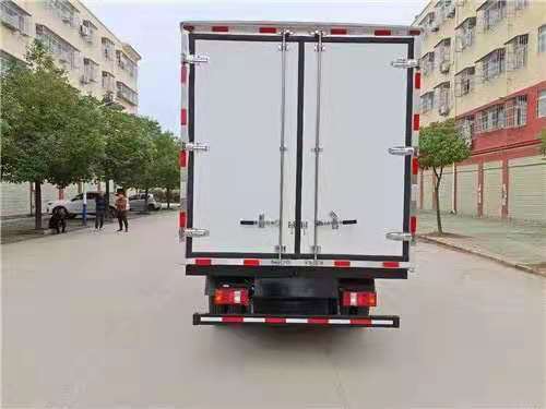 厢体配置:厢体采用内外玻璃钢,中间8CM保温板,后双开门,厢体右侧靠前开侧门,底部铝花纹板。铝合金型材包边,门锁件均为不锈钢 ,厢体内节能LED照明灯。