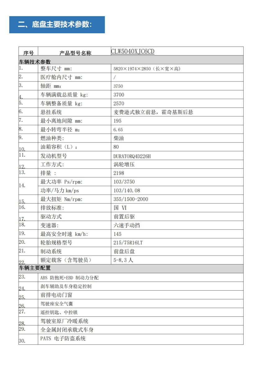 新全顺短轴救护车