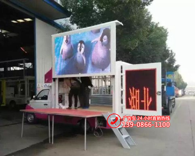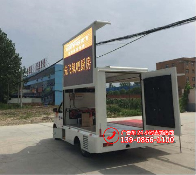 专用部分:(标配是一面P6彩屏尺寸2304*1536=3.54平方米),另一面为玻璃滚轴,车头前条屏尺寸:320mm*960mm。尾部单色字幕屏,尺寸:1280mm*960mm,5CM复合钢架箱体、玻璃钢豪华内饰、铝花纹地板、防水音响2个、功放一台,机电一体化控制、循环通风降温系统、安全智能内外网配电切换系统、高配工控电脑一台、6.5千瓦发电机组机供电,LED显示屏采用深圳皇家品牌表贴户外防水全彩屏。